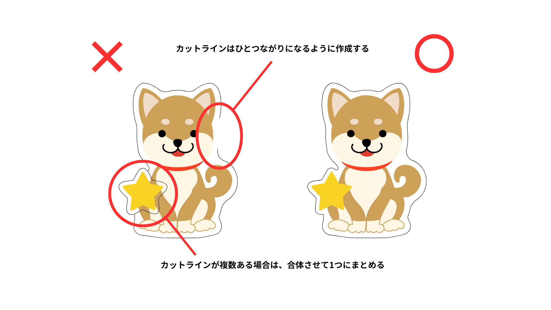 また、パスが複数ある場合も、ひとつながりなるようにカットラインを作成しましょう。