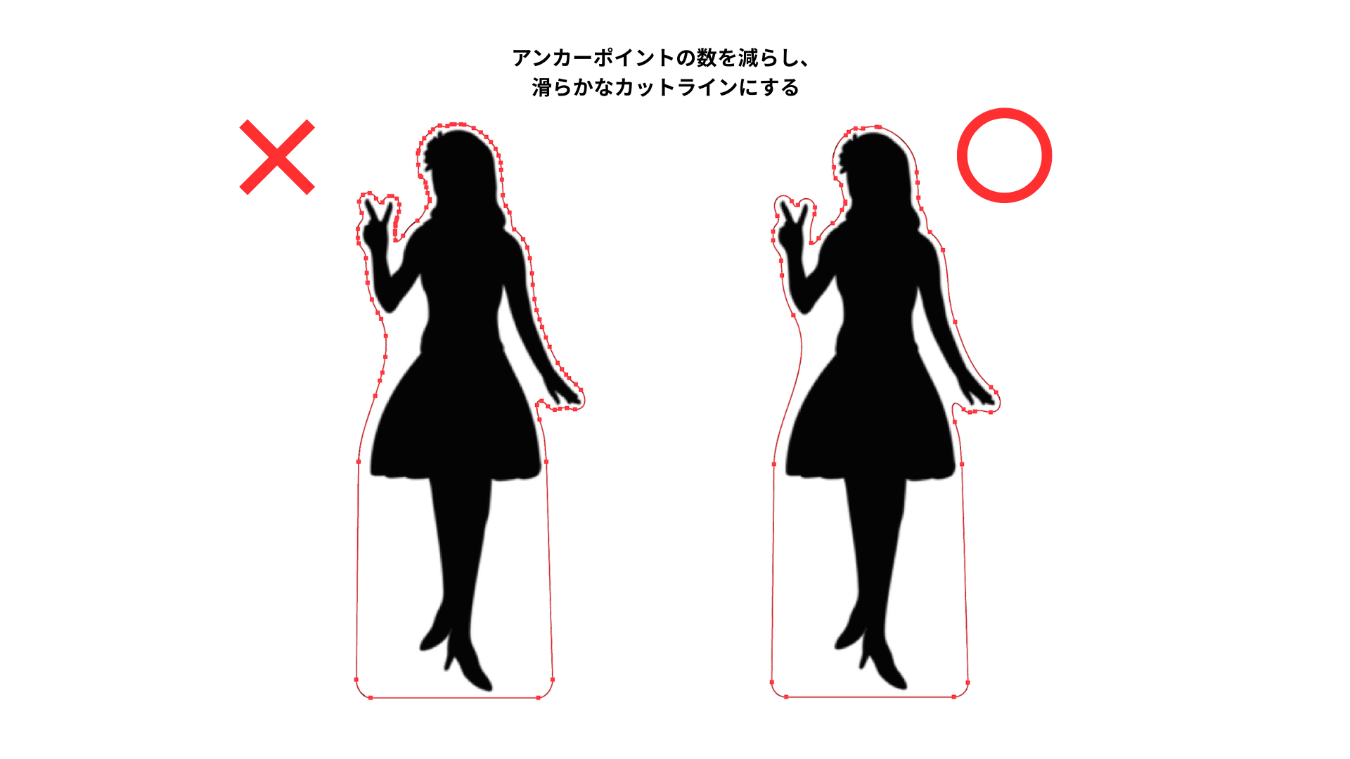カットラインのアンカーポイントが多すぎると、加工が複雑なデータになってしまいます。