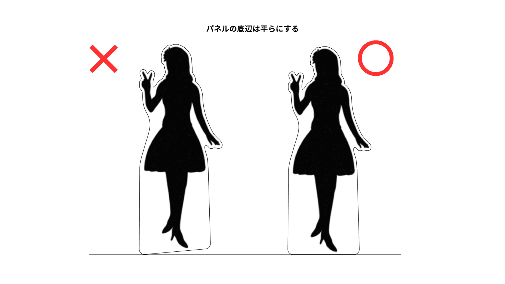 特に、大型の等身大パネルでは、底辺が平らでないと全体の重心が不安定になり、