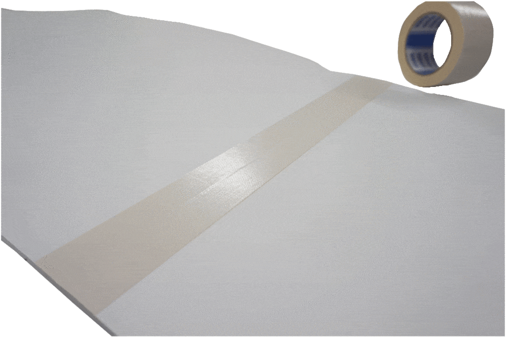 お届け後、お客様ご自身でウラ面の切れ目をテープで貼って補強していただくと、