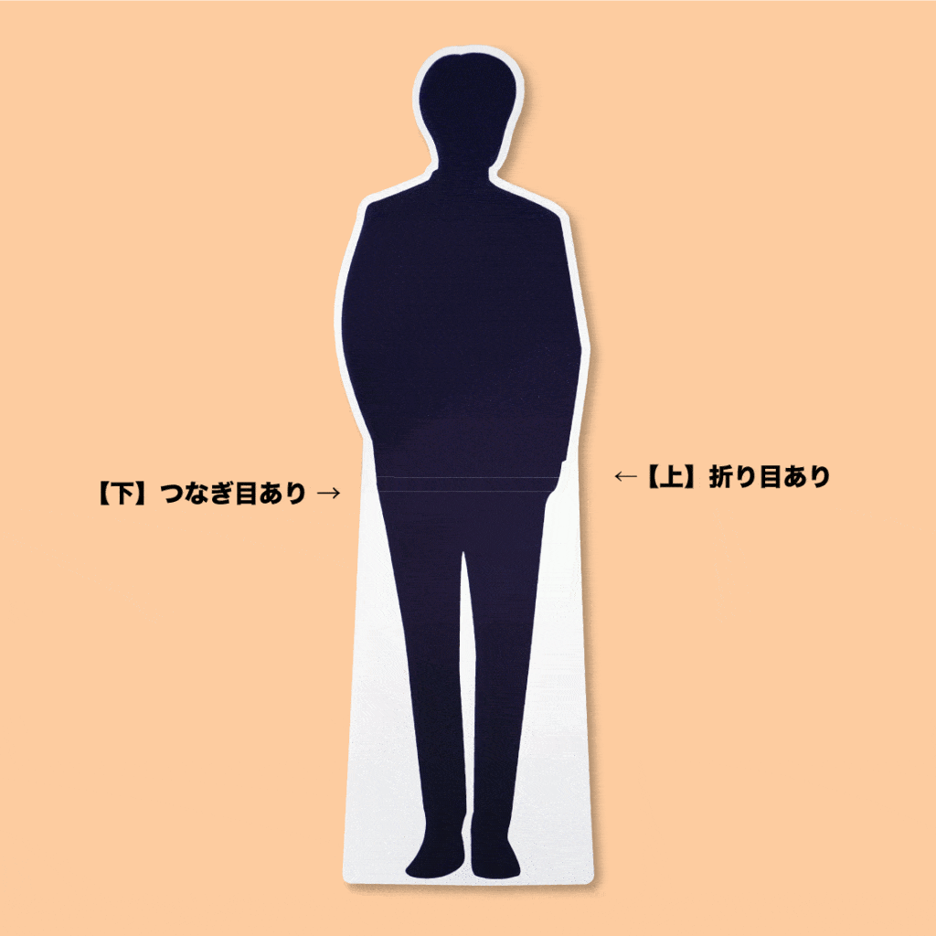 折り目は発生しませんが、印刷面のつなぎ目は発生しますのでご了承くださいませ。